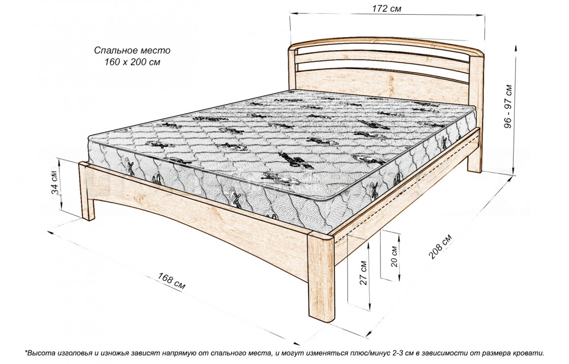 140x200 - глубина уменьшается на 100 мм = 685 мм